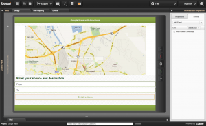 Posted: April 5th, 2012 | Author: admin | Filed under: Articles | Tags: components, Google Maps, JavaScript, tips | No Comments »You can extend the functionality of any Tiggzi component by adding custom JavaScript. Today, we’ll see how the Google Map component in Tiggzi can be used to display driving directions both visually and as text.