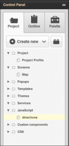 Now we just need to make some changes to the JavaScript. Open the directions script from the Control Panel on the left under Project.