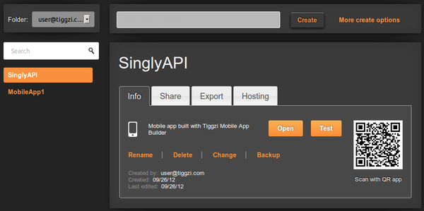 Last week we published the first version of Singly plug-in in Tiggzi. This means you can connect to Singly API in Tiggzi builder in just a few seconds. This also means you can use Singly API to connect to over 18 social networks, integrate people’s contacts, photos, locations, fitness data, and more into your app.