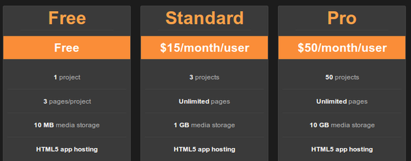 HTML5 app hosting in all plans, plus Standard plan gets unlimited pages