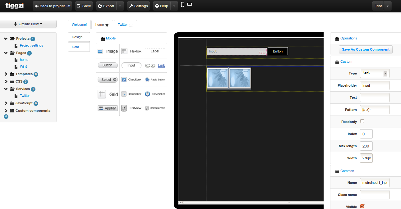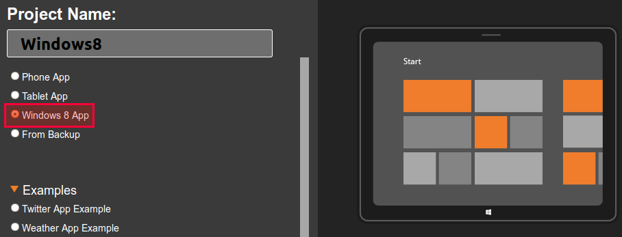 Yesterday we told you that we launched the first beta of our new Tiggzi app builder. The new app builder is designed with HTML5, JavaScript and CSS. In addition to jQuery Mobile support, we have also added Windows 8 support. Now you can build Windows 8 apps for tablets or desktop entirely in the cloud.