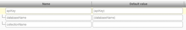In addition to API key and database name you also need to set the collection name (as we don’t have that information). The collection name is defined and set in Request Parameters panel: