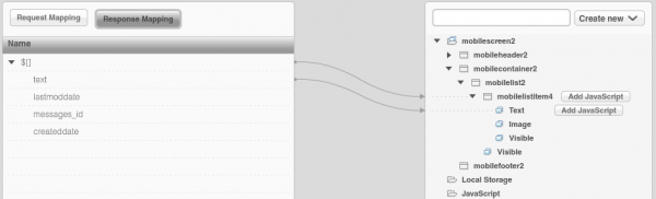 The final part in the app design is mapping service parameters to UI components. Here’s an example of this in action showing response parameters being mapped to output components: