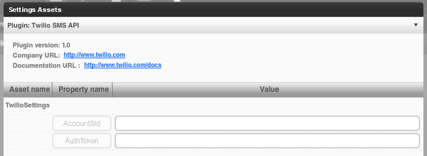 Click Import selected plug-ins button. You will then see a prompt to enter the Twilio Account SID and Twilio AuthToken: