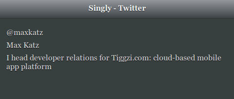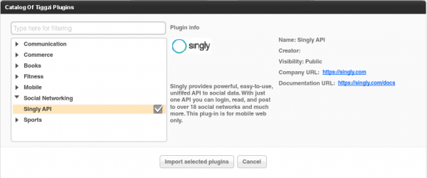 Last week we published the first version of Singly plug-in in Tiggzi. This means you can connect to Singly API in Tiggzi builder in just a few seconds. This also means you can use Singly API to connect to over 18 social networks, integrate people’s contacts, photos, locations, fitness data, and more into your app.