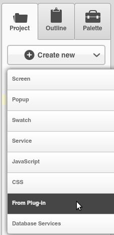 In Tiggzi app builder, select Create New > From Plug-in, then select the StackMob plug-in: