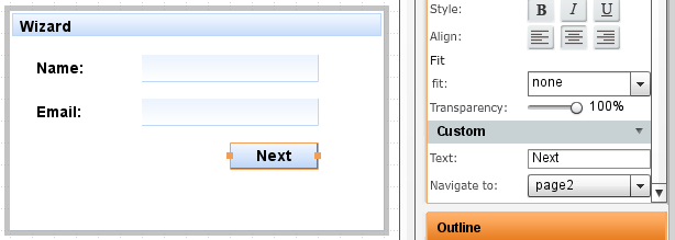 Tiggr prototypes are interactive. For example, when you place a tab panel and then view the prototype in a web browser, you can switch between the tabs. We recently made the Tiggr prototypes even more interactive. It’s now possible to navigate between pages (screens). When you use a button, link, or an image you get an option to specify to which page to transition. When running in Web Preview, you will simply navigate to a different page, just like in real application. Well, making it as real as possible is the whole idea behind Tiggr.