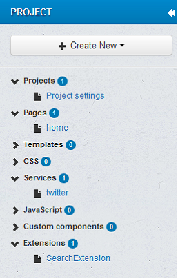 - Open Projects > Create New and select Extensions from the drop-down list.