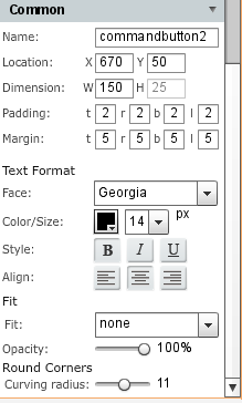 Scrolling farther in properties, you will see other properties you can set shown below. As you can see, you can set everything from padding, margins to standard formatting such as font face, color, size and style. The very last property allows you to set round corners.