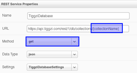 The {tiggziDatabaseId} is resolved from Services/TiggziDatabaseSettings file.