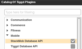 In Tiggzi app builder, select Create New > From Plug-in, then select the StackMob plug-in:
