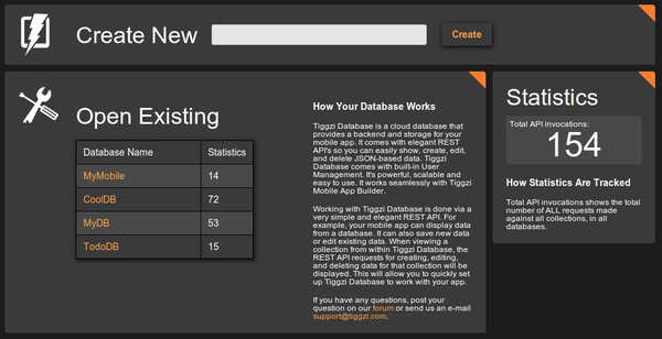 We are super excited the announce the availability of Tiggzi Database (beta). Tiggzi Database is a cloud database that provides a backend and storage for your mobile app. You already know that any using 3rd party REST API is very easy in Tiggzi app builder. Every REST API provides some specific functionality. For example, if you use Facebook API you can easily post a message to the timeline, but what happens if you need to store data specific to your app? Let’s say you are building a todo app - where can you store the list of things to do? That’s exactly where Tiggzi database comes in. It comes with elegant REST APIs so you can easily show, create, edit, and delete app data. Tiggzi database comes with built-in User Management. It’s powerful, scalable and easy to use. It works seamlessly with Tiggzi app builder.