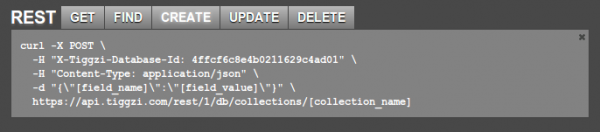 A very nice feature is that you get curl command hints. This will enable you to define a service in Tiggzi app builder very quickly: