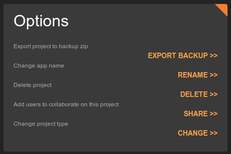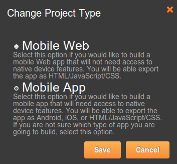 You might be wondering but what about mobile web app hosting? If you use any native device feature, then hosting as a mobile web app doesn’t make sense. But if you didn’t use any native features, then you want to be able to host. If you go to app options, you can now switch the app type from mobile app (hybrid) to mobile web by clicking Change for Change project type: