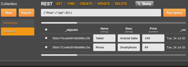 Tiggzi Database comes with Queries support (docs) and now you can try the queries right from the collection console: