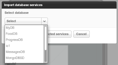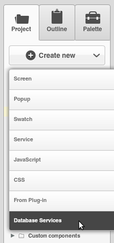 In early July we launched Tiggzi Database where you can store app data. Now we have launched database integration in our app builder. This means you can point to a specific database, select the collection(s) you want to use and automatically generate all the REST services. To create a services from database, select Create New > Database Services: