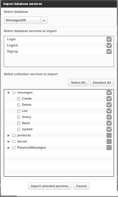 Once the database is selected, you can select the services for which you want to generate REST services.