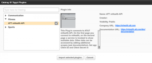 - Click Import selected plugins. You will be prompted to enter the client_id and client_secret information. This information can be obtained from mHealth app settings. You may skip it and enter it later