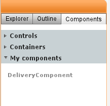 - Go to Components tab on the left-hand side and open My components palette (you might have to close other palettes). There you will see (see screen shot) the custom component we just created: DeliveryComponent.