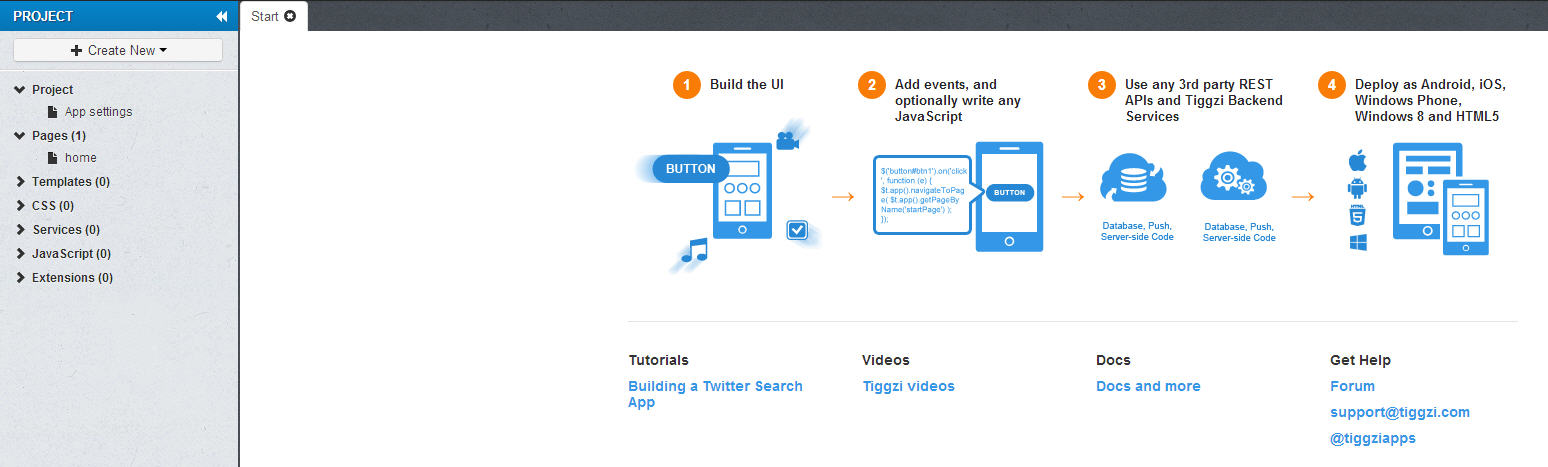 Building a store-ready Windows 8 app with the Tiggzi platform is easy. Follow the steps below: