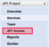 - Scroll up and click API Access item in the left menu: