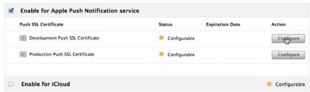 Before yous start, to enable Push Notifications for an iOS app, you must have a Development Certificate if your app registered in Development mode and Production Certificate if your app registered in Distribution mode.